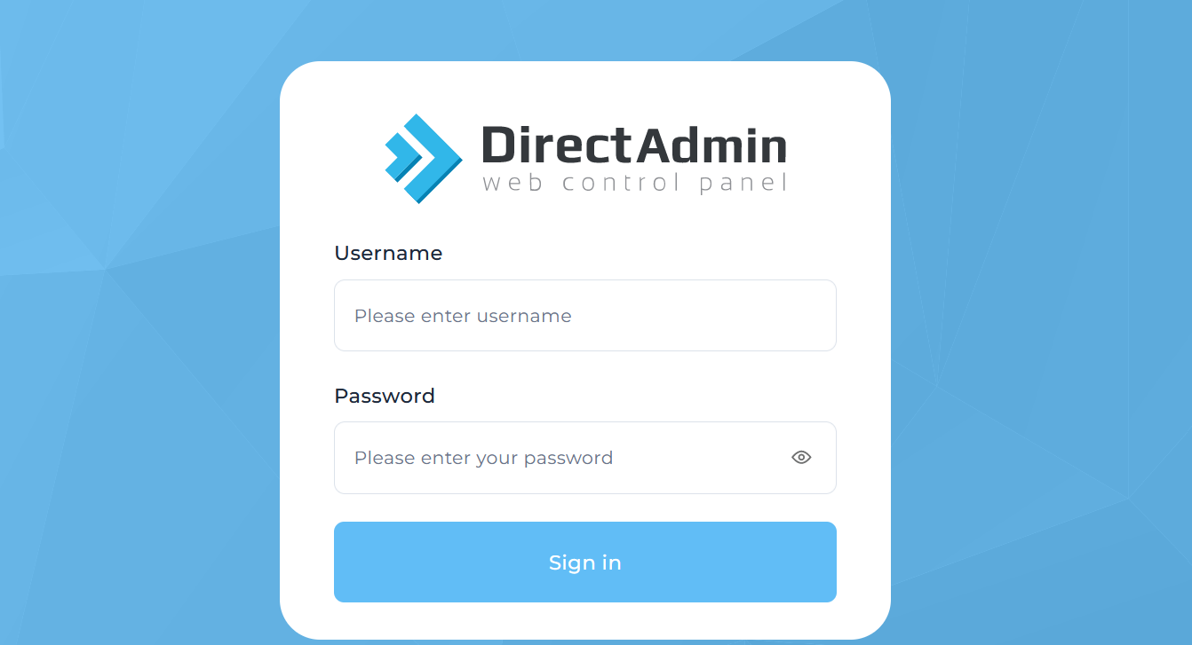 - Open your web browser and go to the DirectAdmin login page provided by your hosting provider.