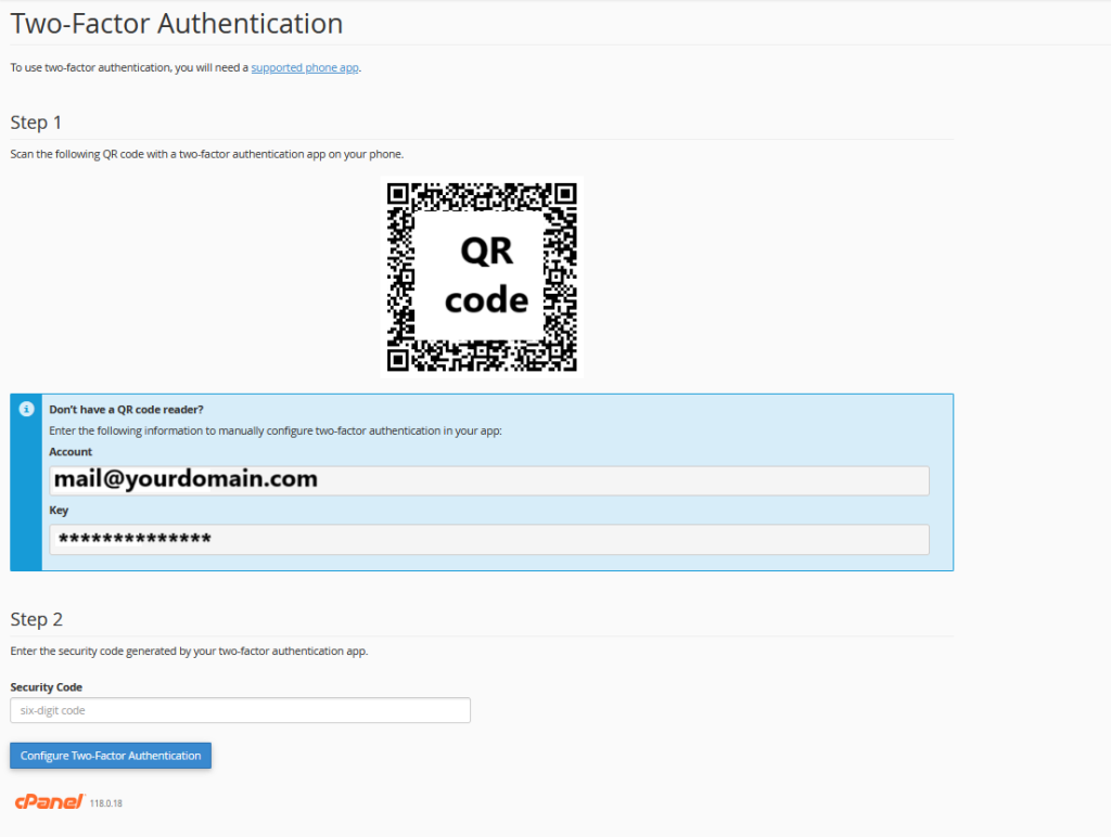 - Log into cPanel and navigate back to the Two-Factor Authentication section.