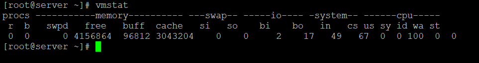 command reports information about processes, memory, paging, block IO, traps, and CPU activity.