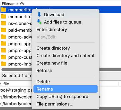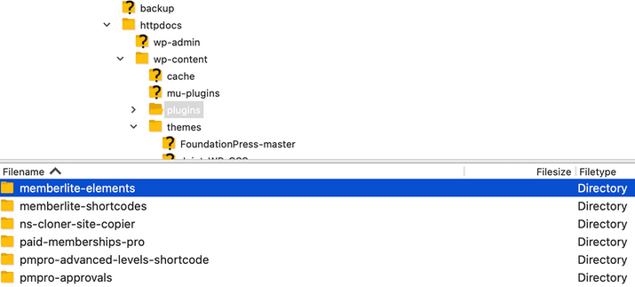 • Just like in the FTP method, rename the folder to deactivate the plugin.