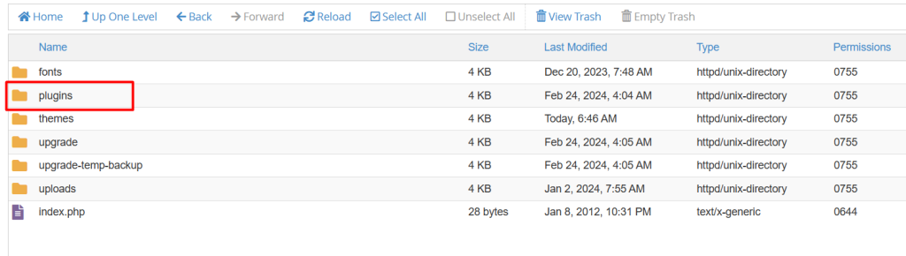 • Find the folder of the plugin you want to Disable Plugins in WordPress.