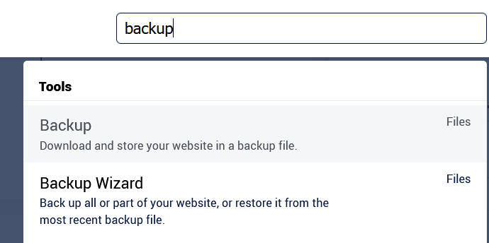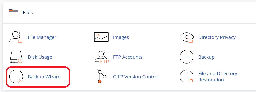 Once logged in, scroll down to the “Files” section or search for “Backup” in the search bar. Click on the “Backup” or “Backup Wizard” icon.