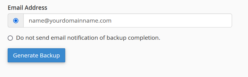 Click on the “Generate Backup” or “Backup” button to start the backup process. This may take some time, depending on the size of your account.