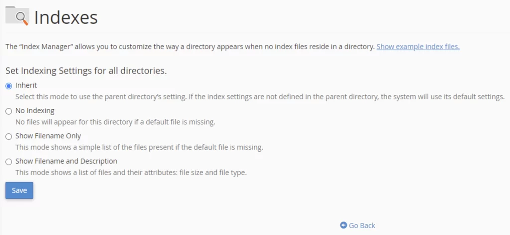 The Index Manager in cPanel allows you to control how directories on your website are displayed to visitors.