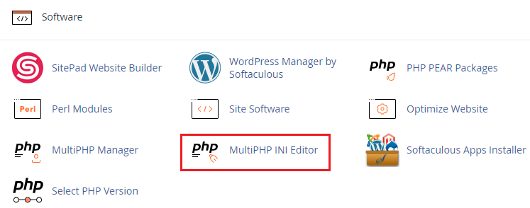 • Alternatively, find and click MultiPHP INI Editor, also located in the Software section.
