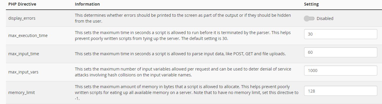 • This tool allows you to directly edit the php.ini configuration for specific domains or directories.